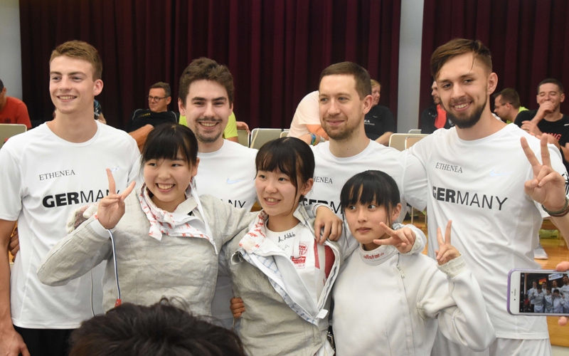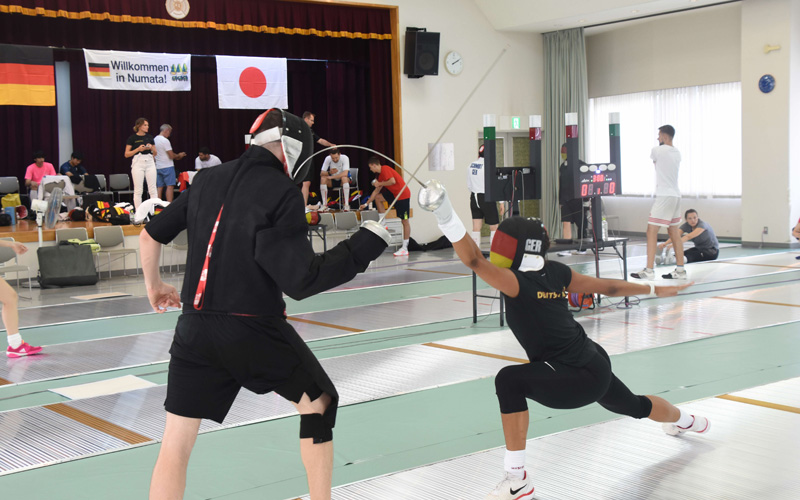 The German national fencing team visited Numata in July 2018. The 24 athletes came to do their final training before the World Fencing Championships that were held in China. The city staff invited 12 members of Japan’s national team to come and practice with the German athletes and arranged exchange matches.